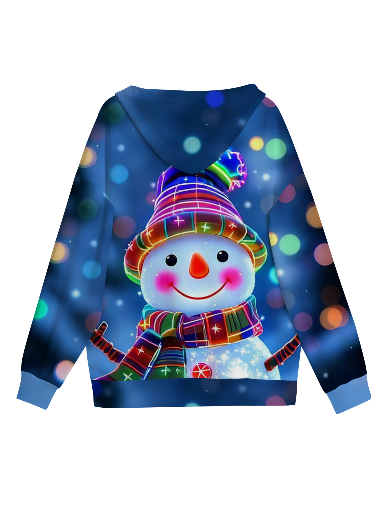 Women'S 3D Printed Snowman & Snowflake Cardigan - Sparkling Winter Sweater Coat with Hooded Collar, Long Sleeve Slim-Fit Outerwear, Machine Washable Christmas Party Outfit, Cozy Casual Winter Jacket for Casual Attire & Holiday Events