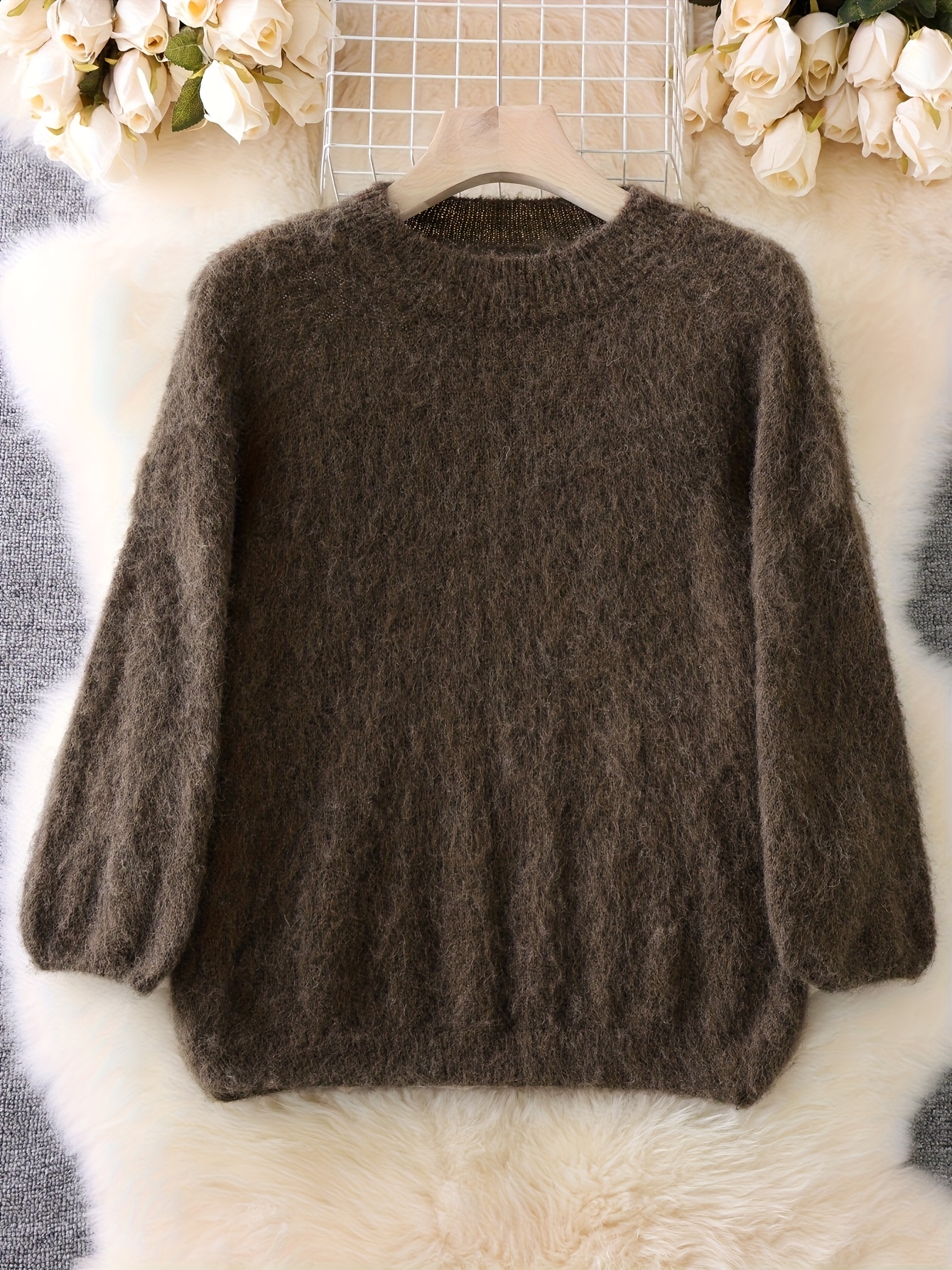 Women'S Soft Plush Sweater - Thick Winter Pullover Sweater, Cozy Sweater for Fall/Winter, Everyday & Formal Outfits - Women'S Sweater for Women - Elegant Sweater, Winter Sweater, Fall Fashion, Round Neckline, Stylish Knitwear, Fashion Lovers