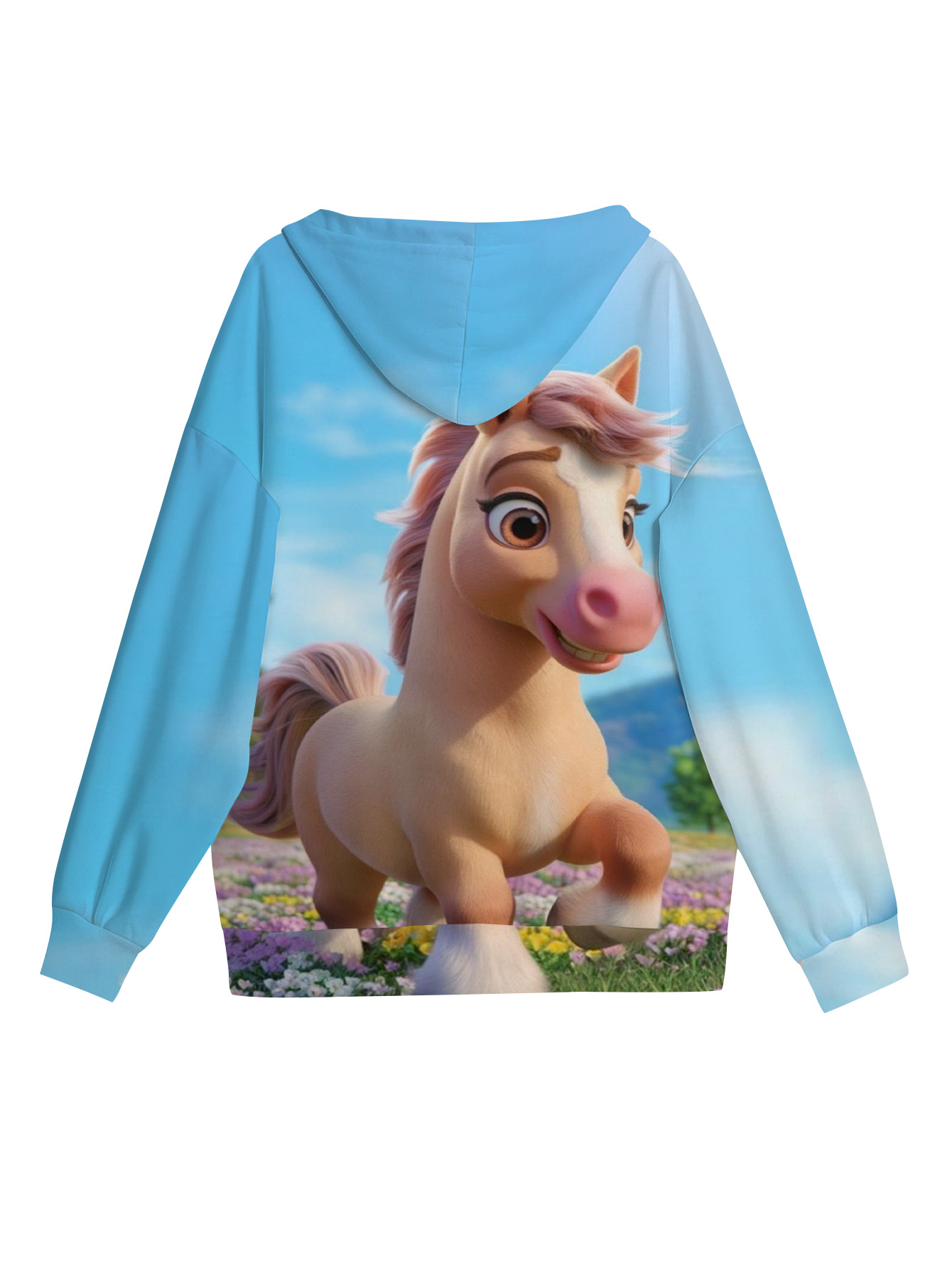 Women's Cute Horse & Flower Print Cardigan Jacket - Soft Slim-Fit Winter Coat with Hood-like Collar, Long Sleeve Blazer for Fall & Winter, Machine Washable Sweater (No Belt) - Equestrian-Themed Outerwear