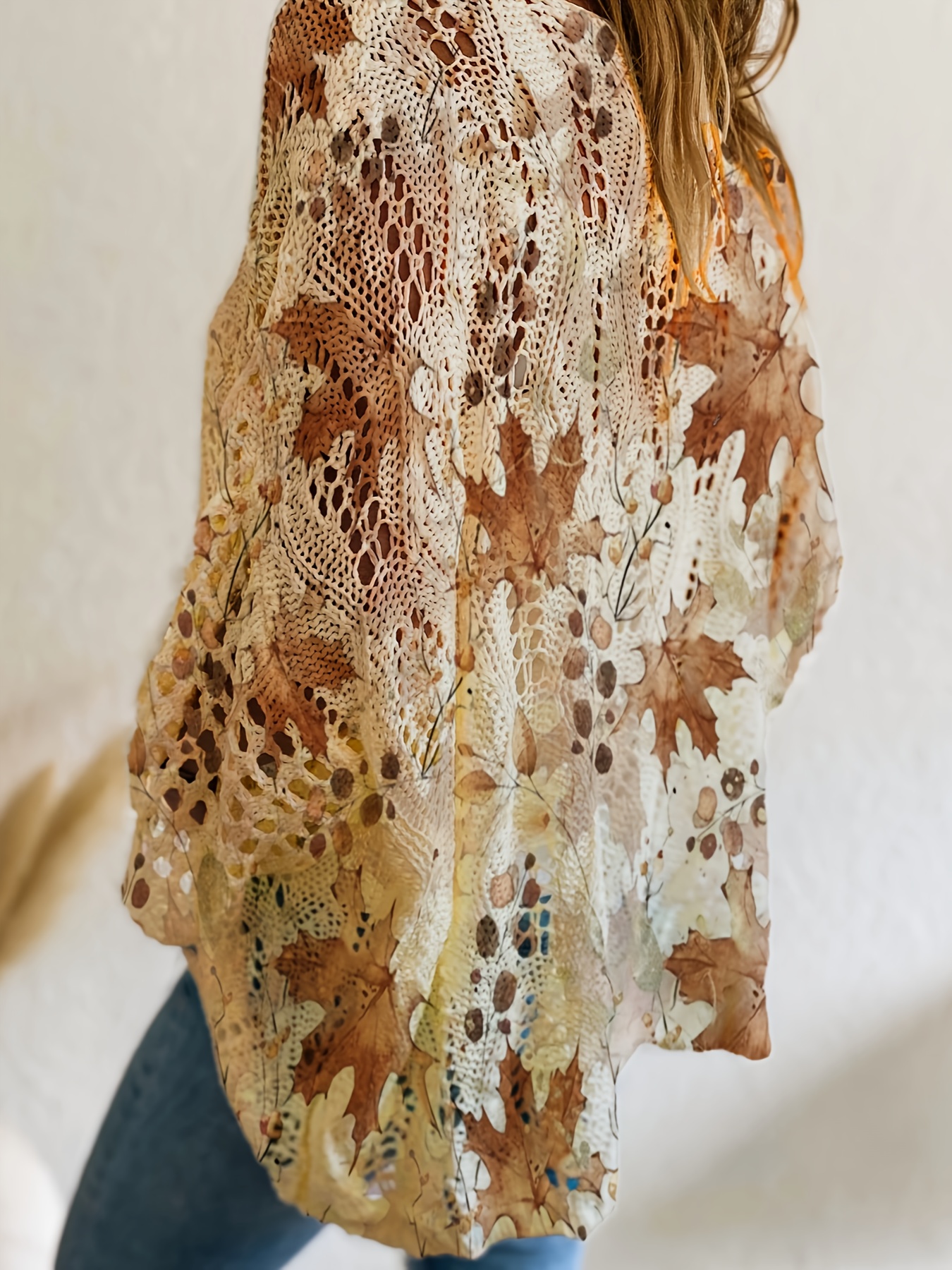 Women'S Off-Shoulder Top with Maple Leaf Print - Casual, Elegant, and Perfect for Vacation, Spring/Summer Collection, Long Sleeve, Loose Fit, Beige, Casual Wear|Elegant Offshoulder Top| Construction, Off Shoulder Top