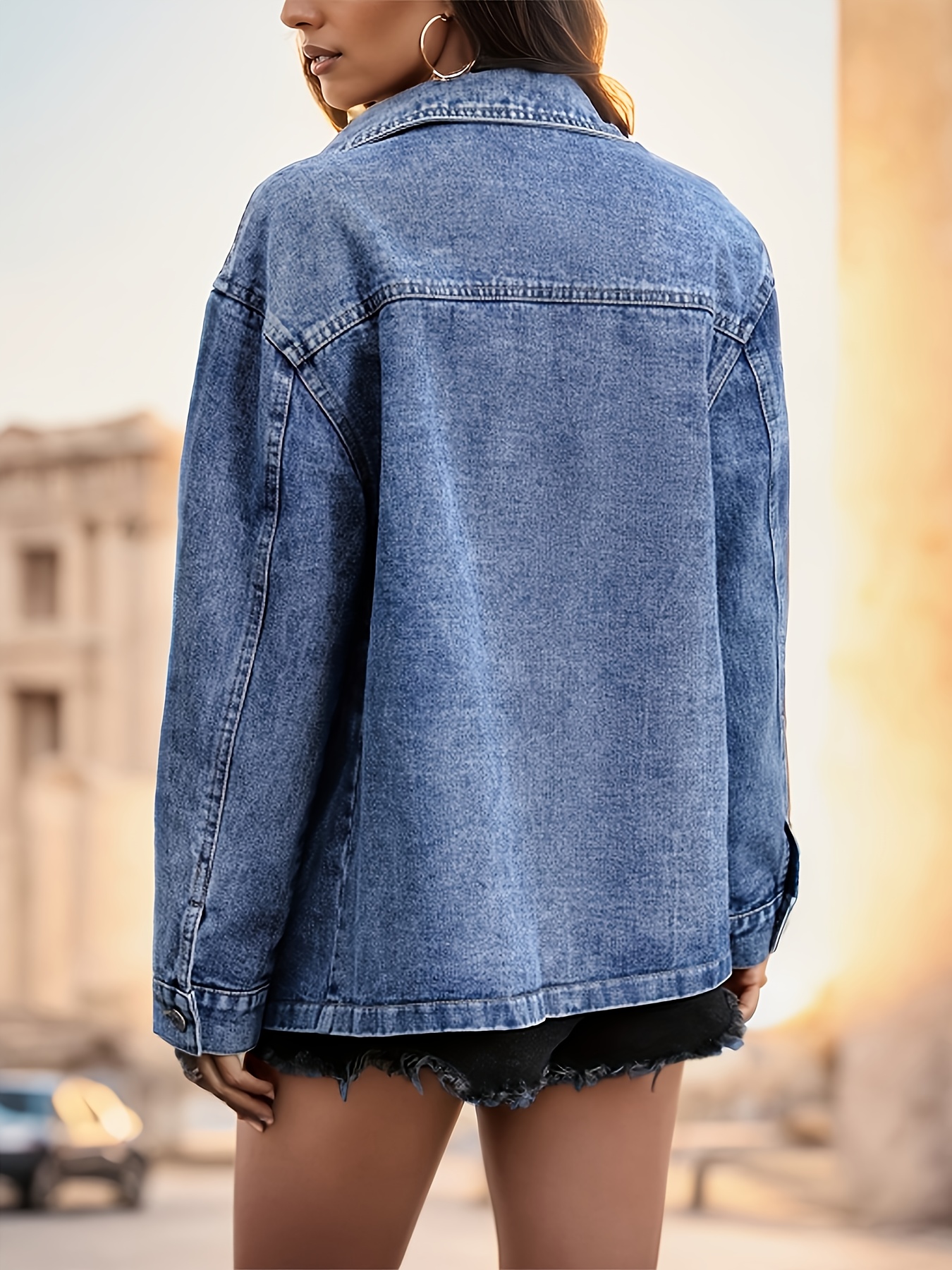 Women'S Plus Size Solid Color Lapel Button With Pocket Denim Jacket, Autumn And Winter Casual Sportswear