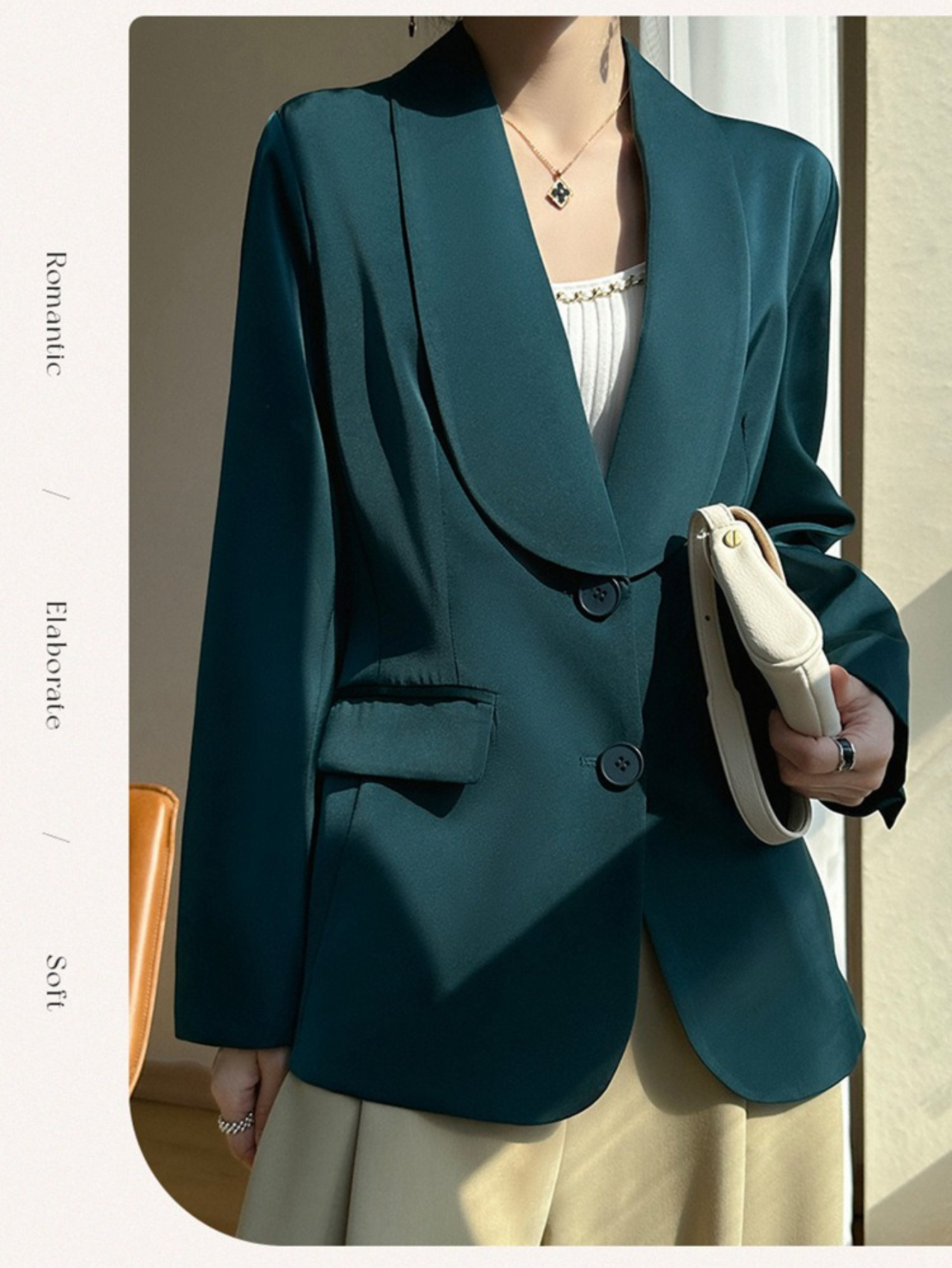 Plus Size - Women'S Luxury -Like Satin Loose-Fitting Suit Jacket - Thin Design Professional High-End Tailored Blazer, Solid Color Elegant Office & Formal Wear, Spring/Autumn Versatile Outerwear for Business, Weddings, Semi-Formal Events - Women'S Fa