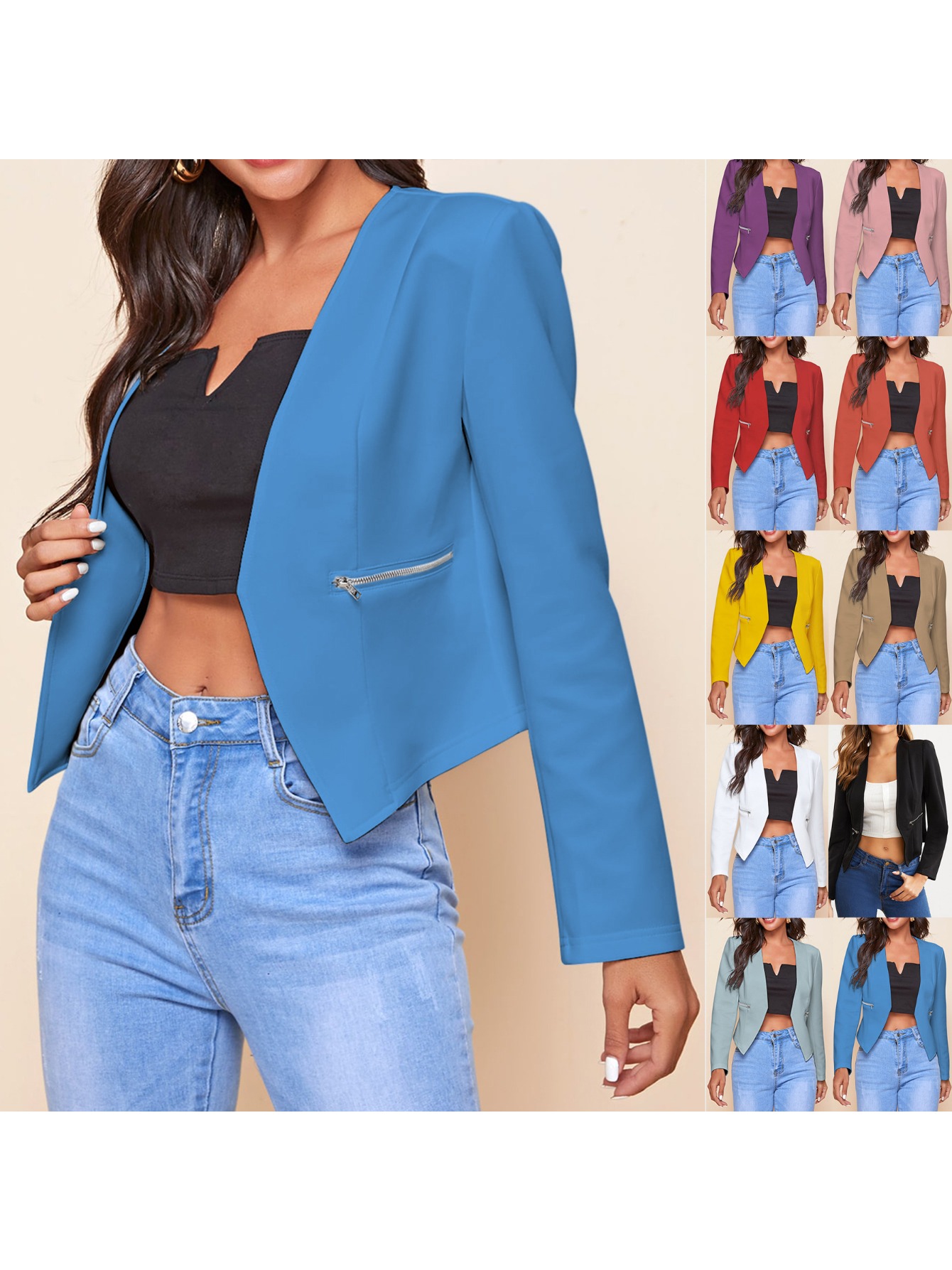 Plus Size, Women's Plus-Size Elegant Mustard-Yellow Blazer with Black Collar & Zipper Pockets - Structured Collar Long Sleeve Tailored Coat, All-Season Versatile Jacket for Casual, Business & Formal Wear - Machine Washable Tailored Fit (Vibrant Yellow) - Front Placket, Notched Collar, Zipper Closure, Solid Color, Suitable for Spring & Autumn, Mature Style, Suitable for Casual Attire, Plus Size Womens Blazer, Oversized Blazer For Women Plus Size,