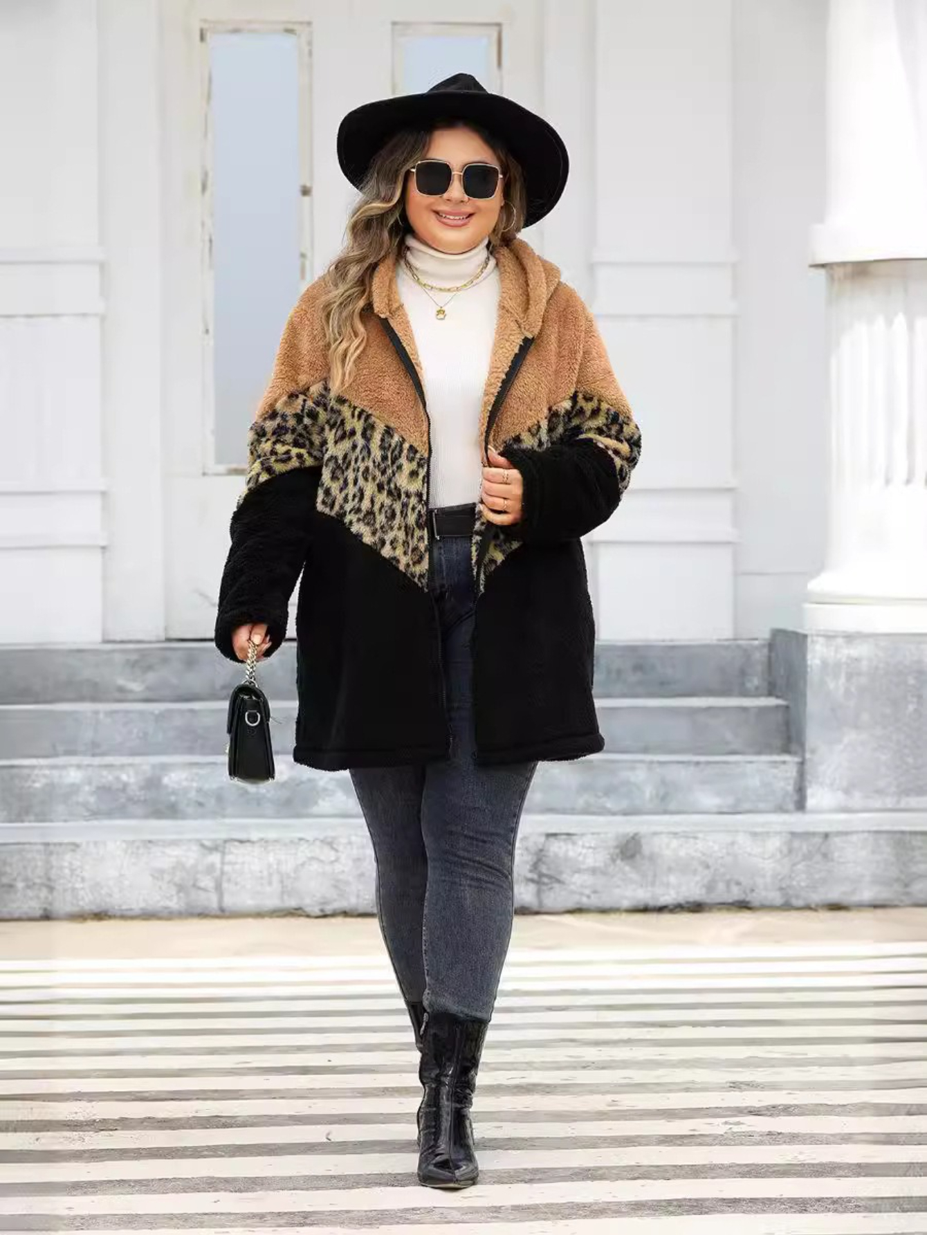 Women'S Plus-Size Leopard Print Hooded Jacket - Full-Zip Winter Coat with Full-Length Zipper, Warm Casual Outerwear, Cozy Fall & Winter Jacket for Everyday Outfits, Parties & Travel | Stylish & Comfortable Animal Print Outerwear