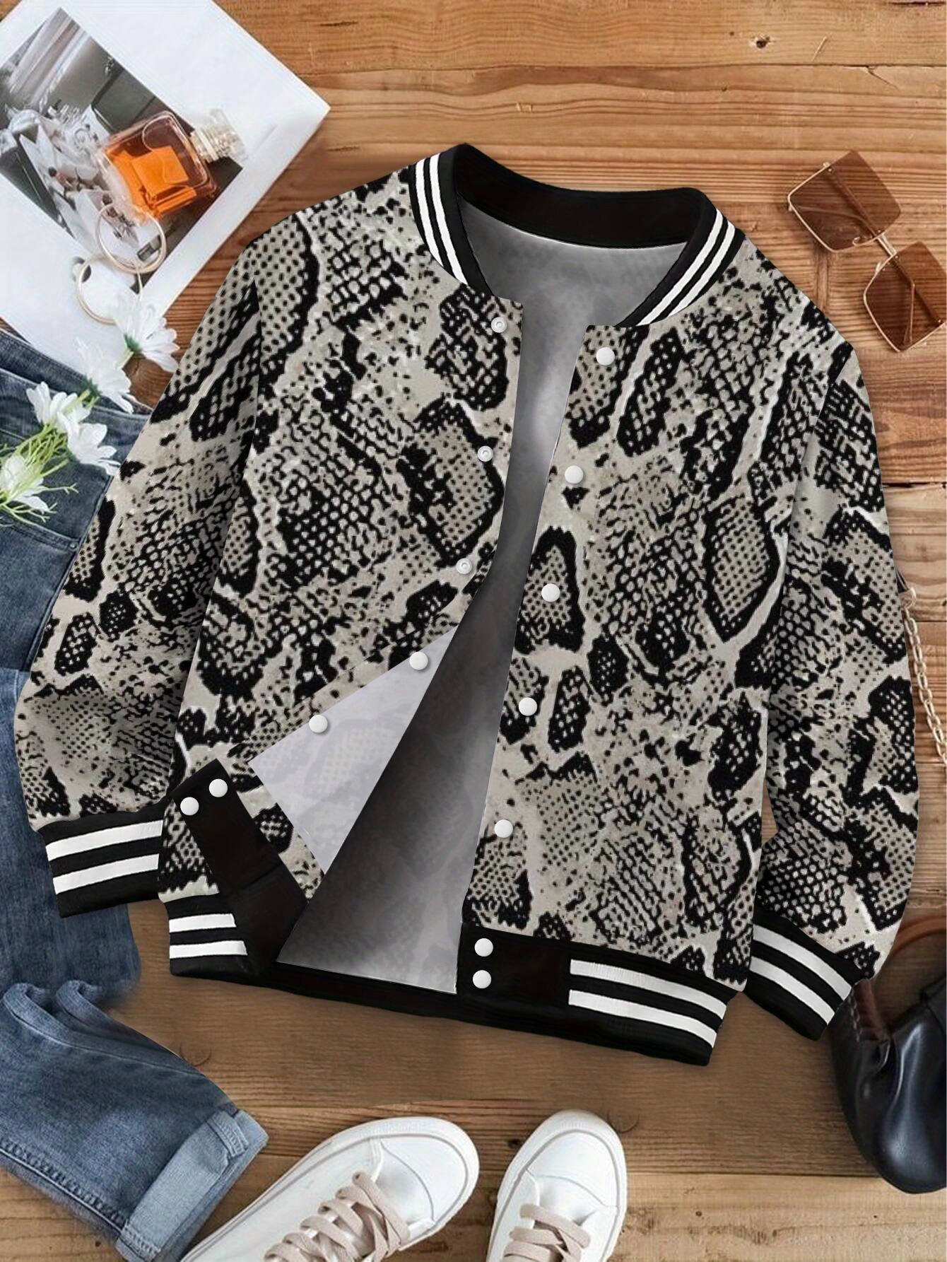 Women'S Snake Print Baseball Jacket Hoodie - Golden Reptile Scale Pattern, Long Sleeve Crewneck Winter Warmth, Regular Fit with Piping Trim & Medium-Stretch Fabric, Casual Outerwear for Everyday & Themed Events, Fall/Winter Layering Piece with Funct