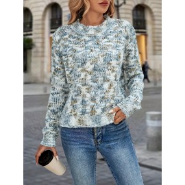 Women's Autumn Winter Sweater - Middle Eastern-Inspired Gradient Color Block Design, Soft Round Neck Long Sleeve Pullover, Elegant Casual Chic Top for Versatile Outfits, Sweater
