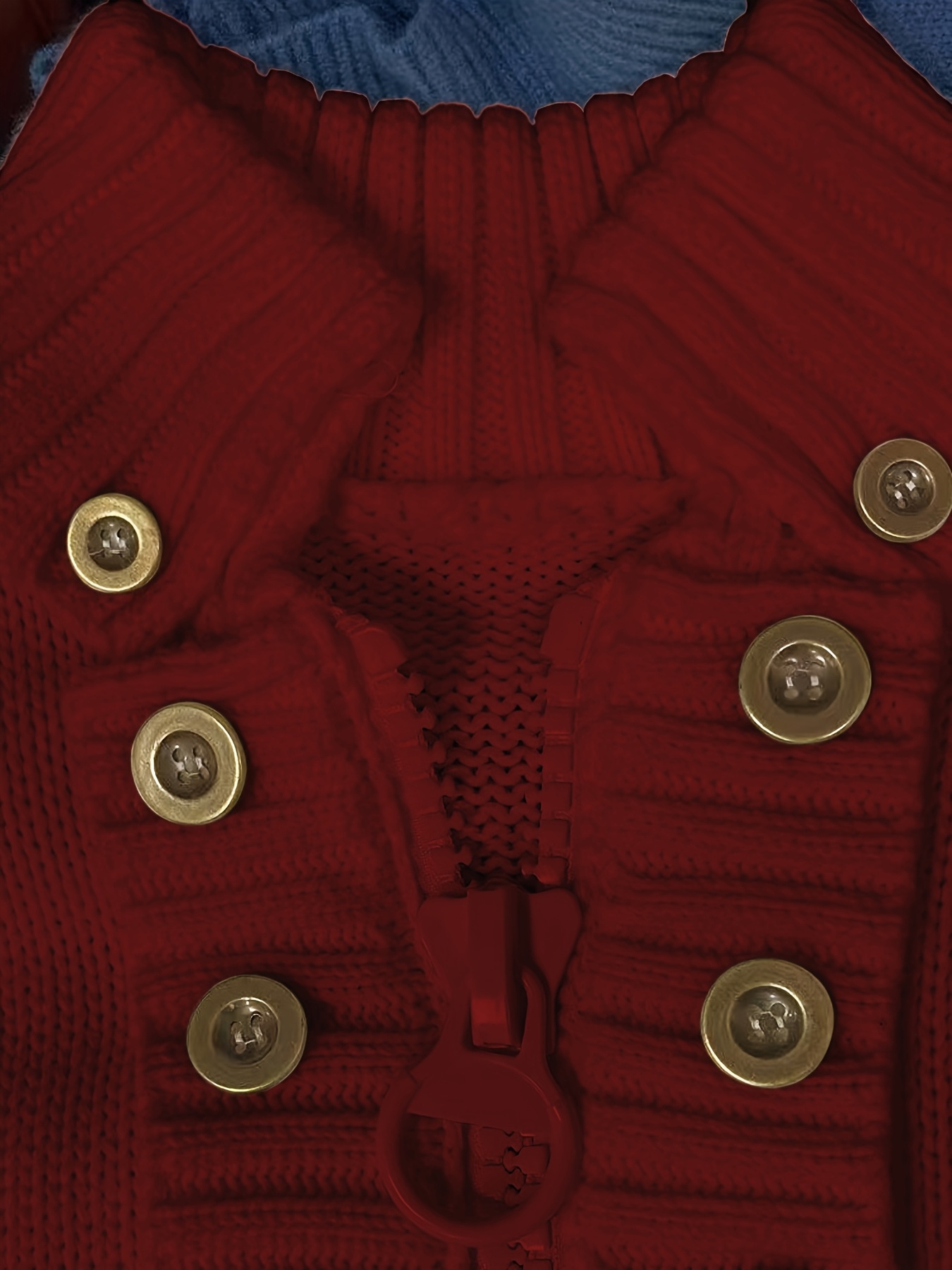 Multi-button decorated large zipper stand-up collar slim-fit cardigan