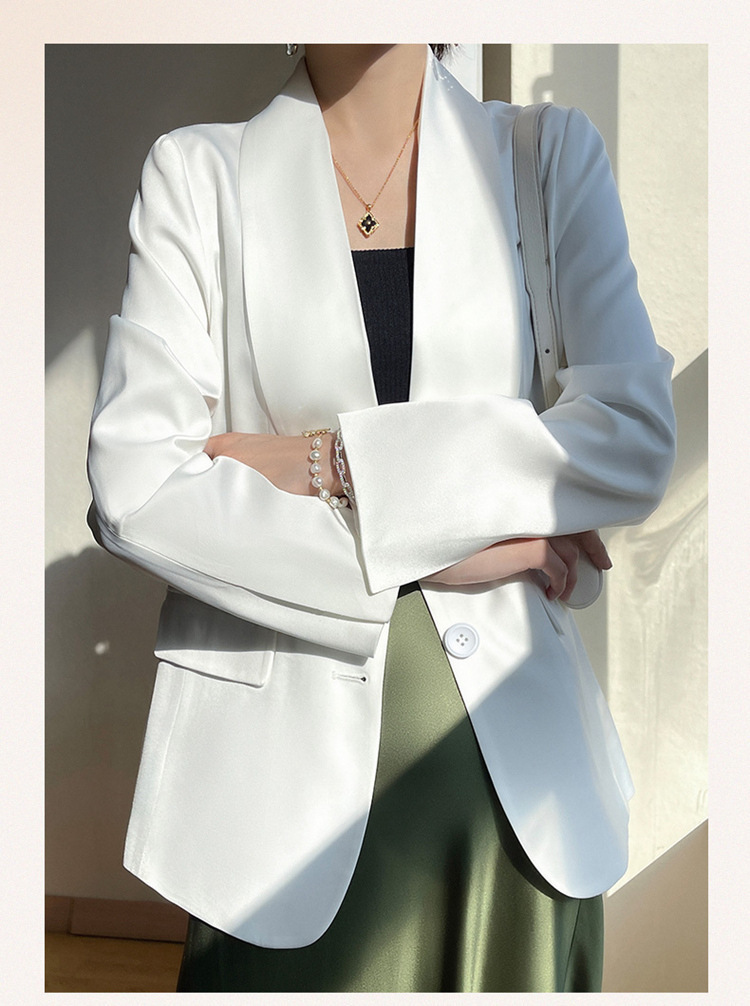 Plus Size - Women'S Luxury -Like Satin Loose-Fitting Suit Jacket - Thin Design Professional High-End Tailored Blazer, Solid Color Elegant Office & Formal Wear, Spring/Autumn Versatile Outerwear for Business, Weddings, Semi-Formal Events - Women'S Fa