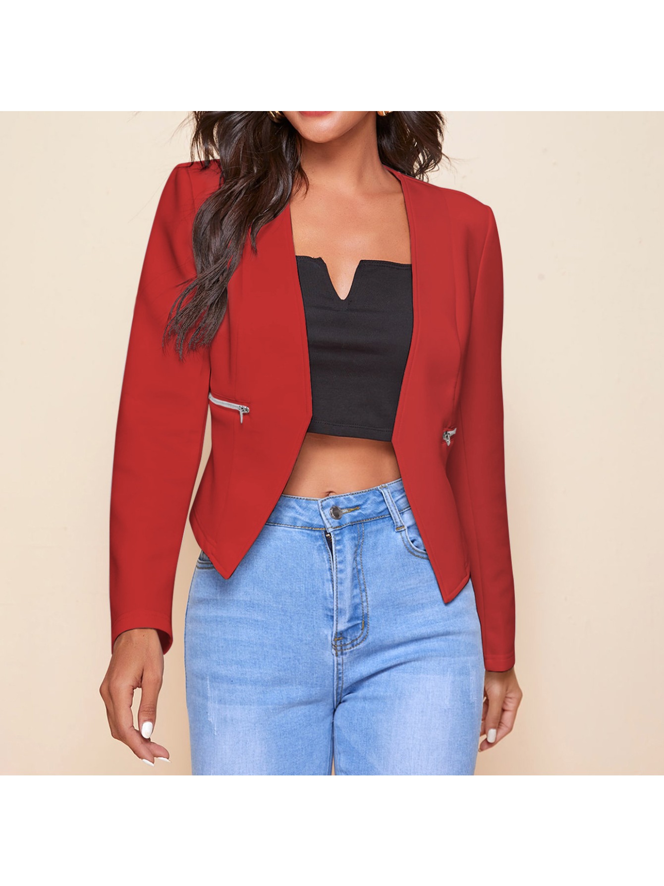 Plus Size, Women's Plus-Size Elegant Mustard-Yellow Blazer with Black Collar & Zipper Pockets - Structured Collar Long Sleeve Tailored Coat, All-Season Versatile Jacket for Casual, Business & Formal Wear - Machine Washable Tailored Fit (Vibrant Yellow) - Front Placket, Notched Collar, Zipper Closure, Solid Color, Suitable for Spring & Autumn, Mature Style, Suitable for Casual Attire, Plus Size Womens Blazer, Oversized Blazer For Women Plus Size,